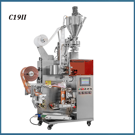 C21DX-II Triangle tea bag sealing and packing machinery is suitable for inner pyramid bag with outer envelope, and for packing multi-material product such as loose leaf tea, herbal tea, health care tea, TieGuanYin, Longjing, DaMaoFeng, DaHongPao, Rose tea, Ginseng, etc.
